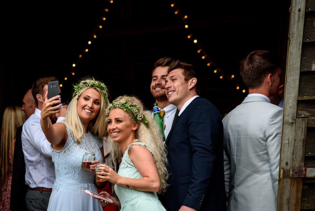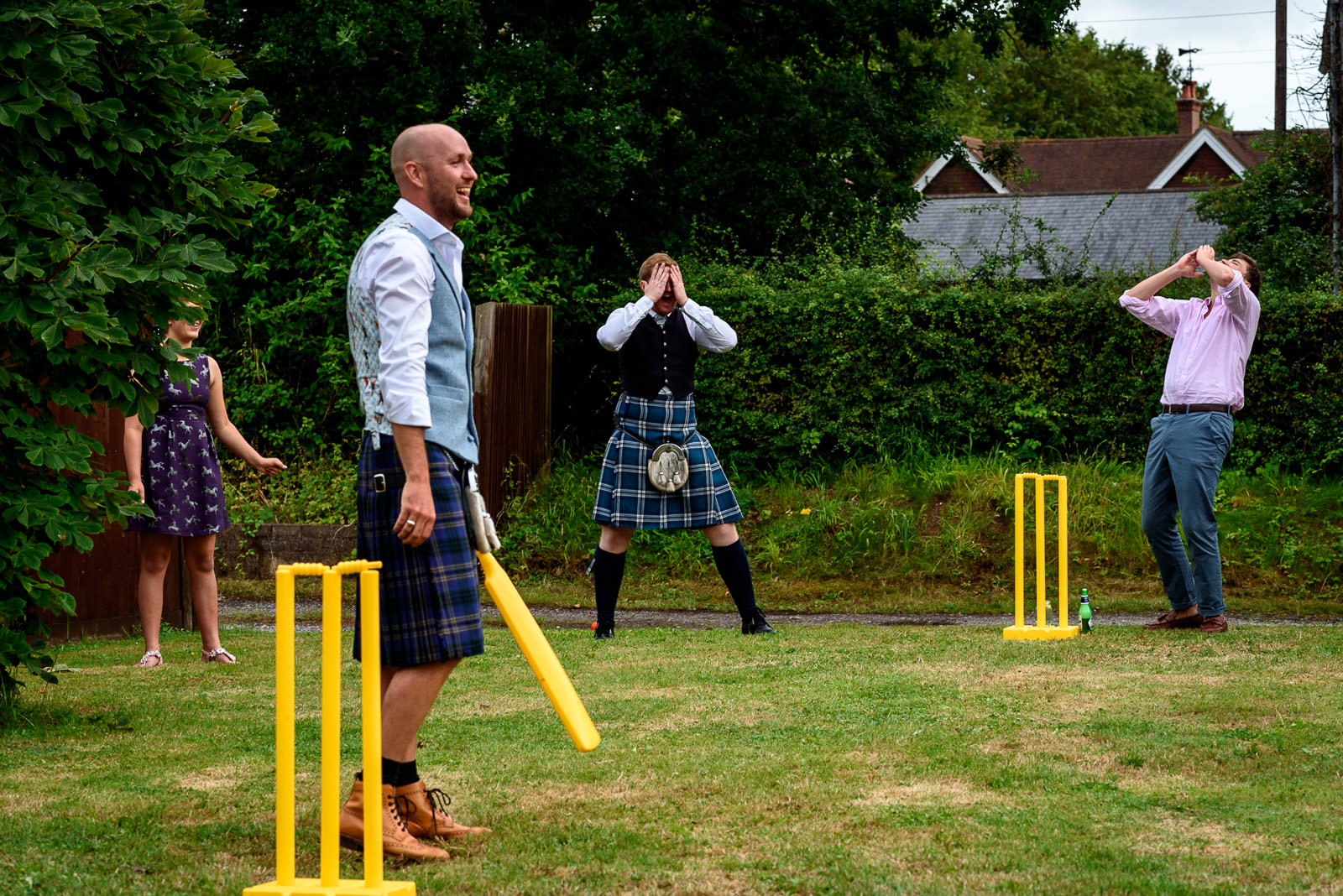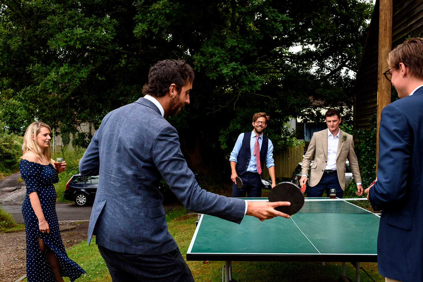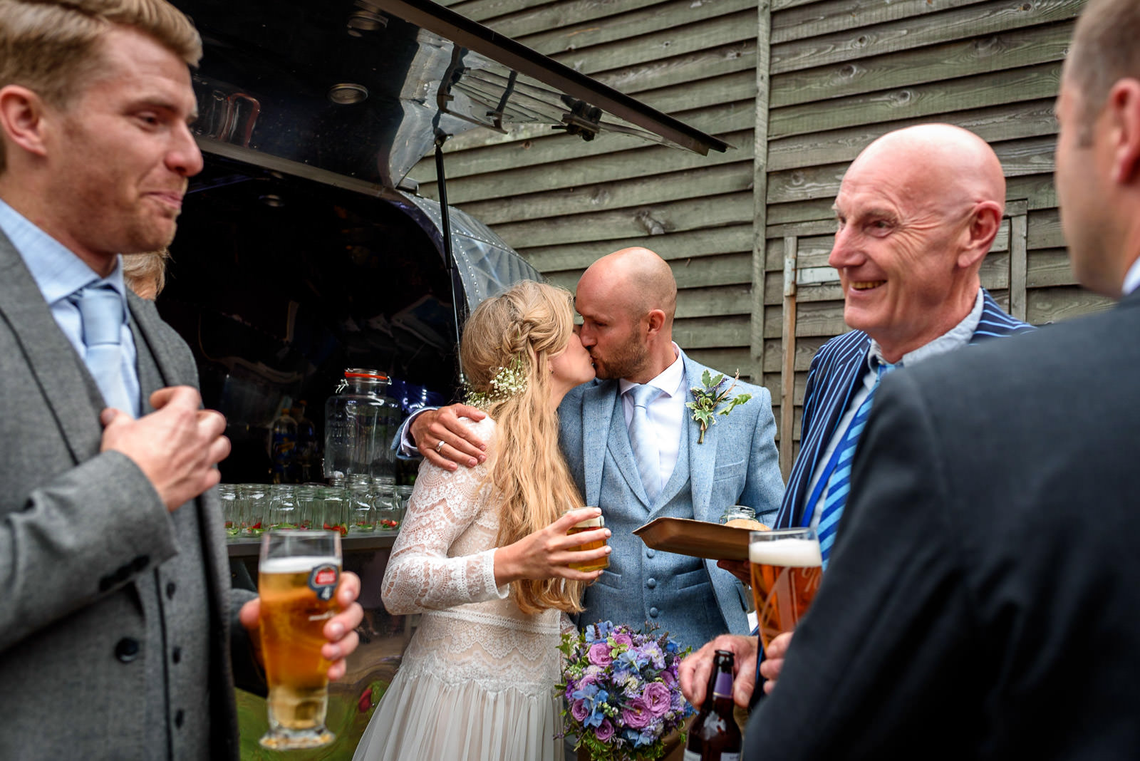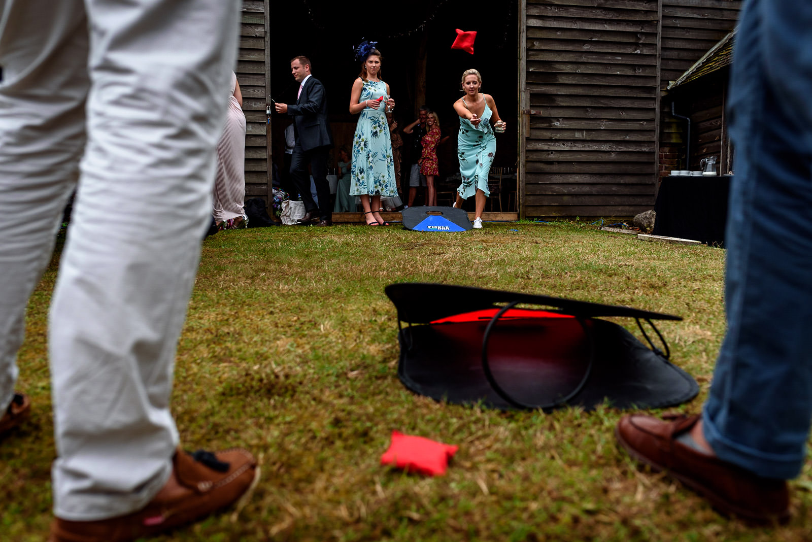 After our cuteness dose of taking photos with their dog, we joined the party at a family barn nearby. The barn and grounds were carefully decorated with DYI flowers in wine glasses and loads of fairy lights. We enjoyed delicious festival type foods and loads of Pimms while watching the guests play all kind of games from cricket to ping pong and bean bag tossing.