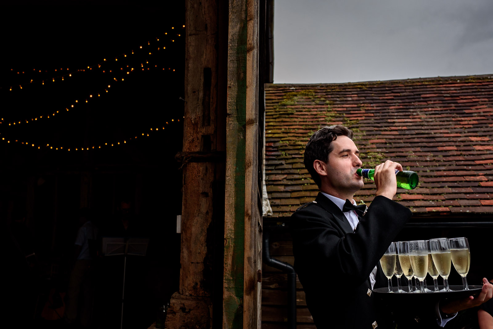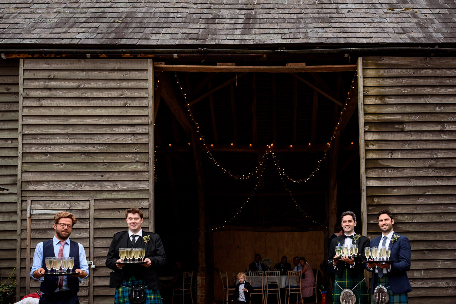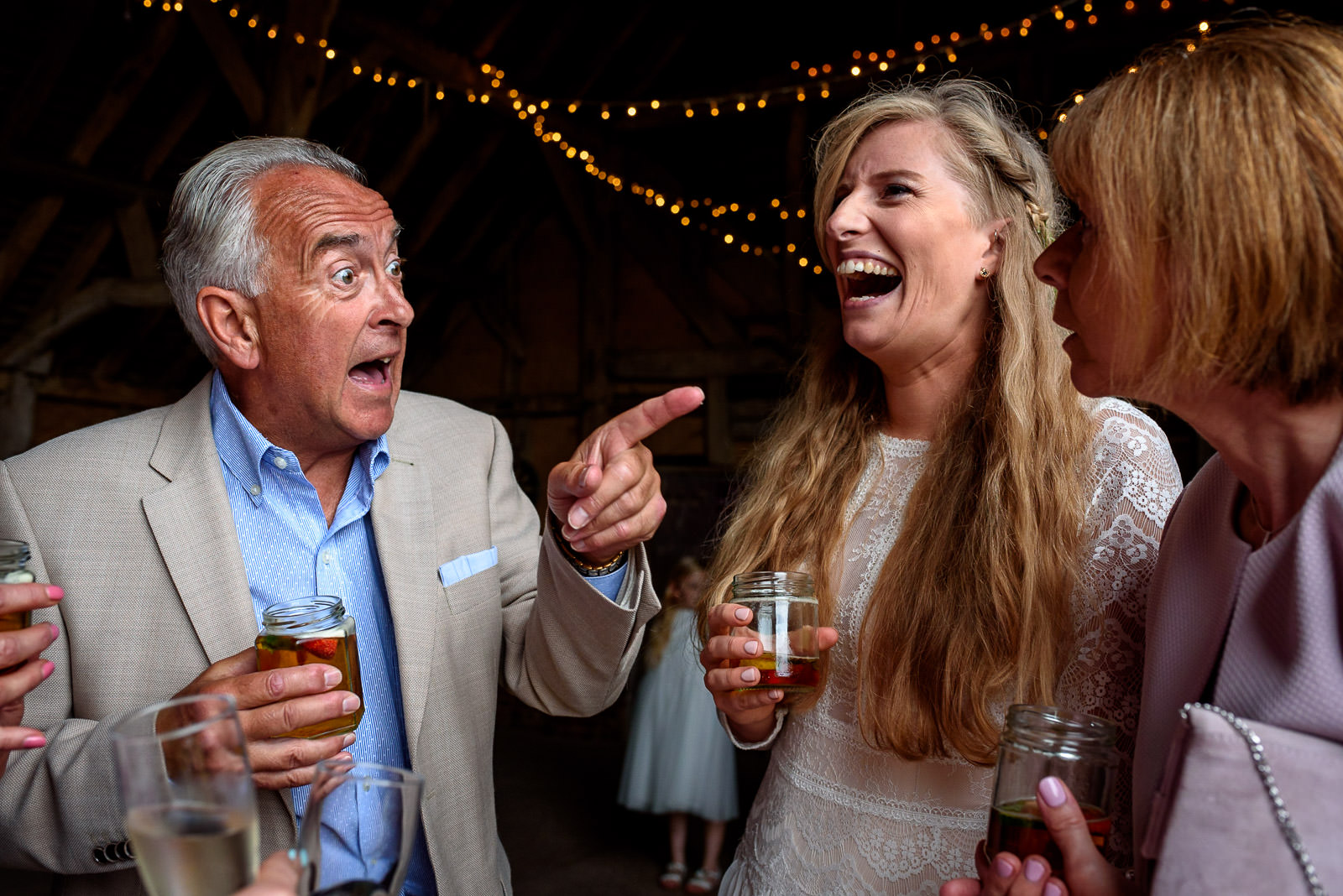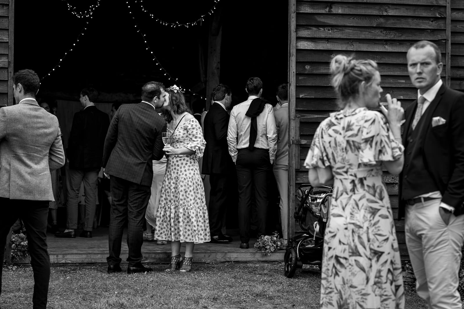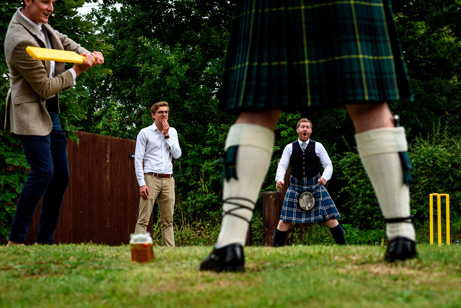 After our cuteness dose of taking photos with their dog, we joined the party at a family barn nearby. The barn and grounds were carefully decorated with DYI flowers in wine glasses and loads of fairy lights. We enjoyed delicious festival type foods and loads of Pimms while watching the guests play all kind of games from cricket to ping pong and bean bag tossing.