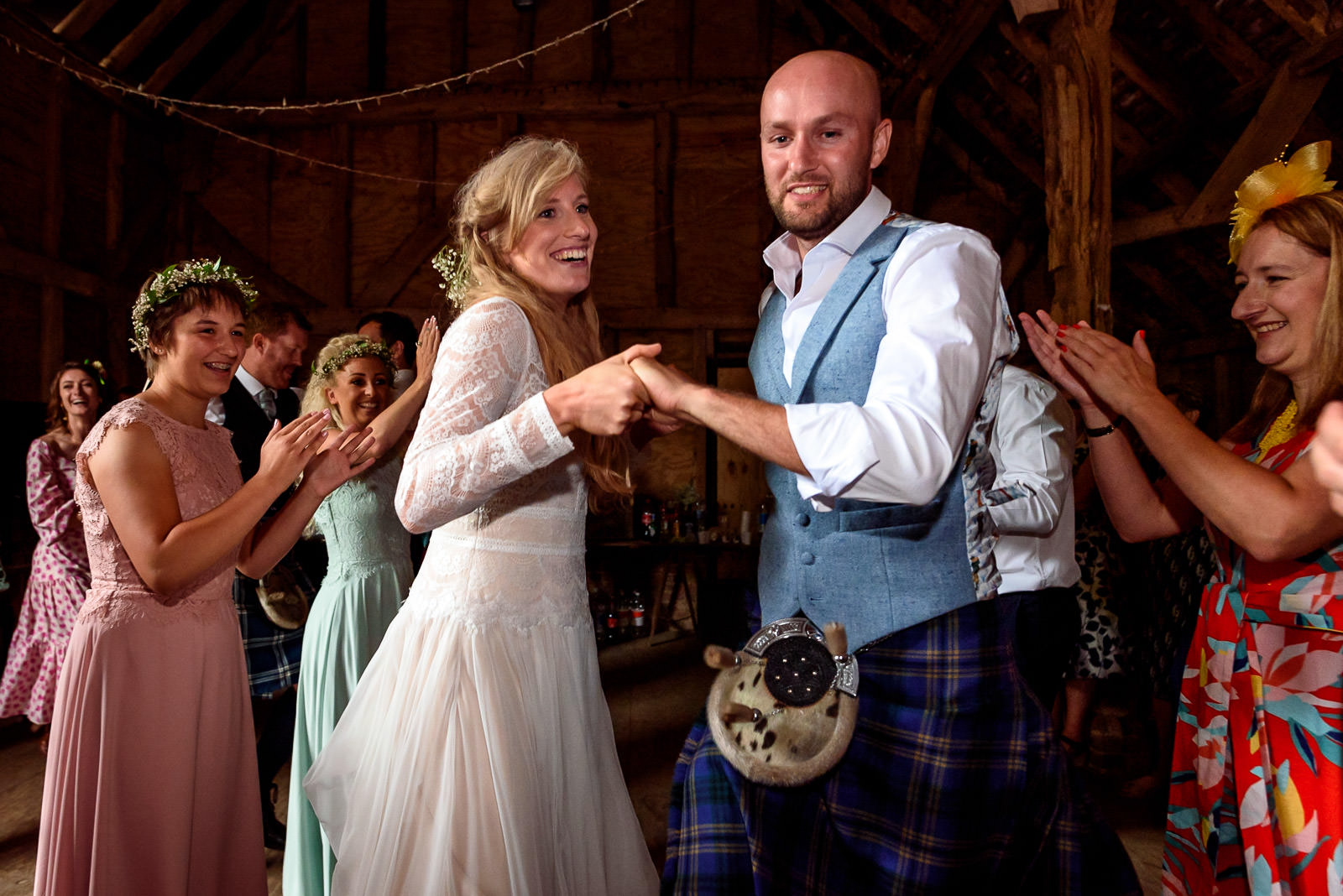 Barn wedding with festival food and drinks, outdoors games and ceilidh dancing