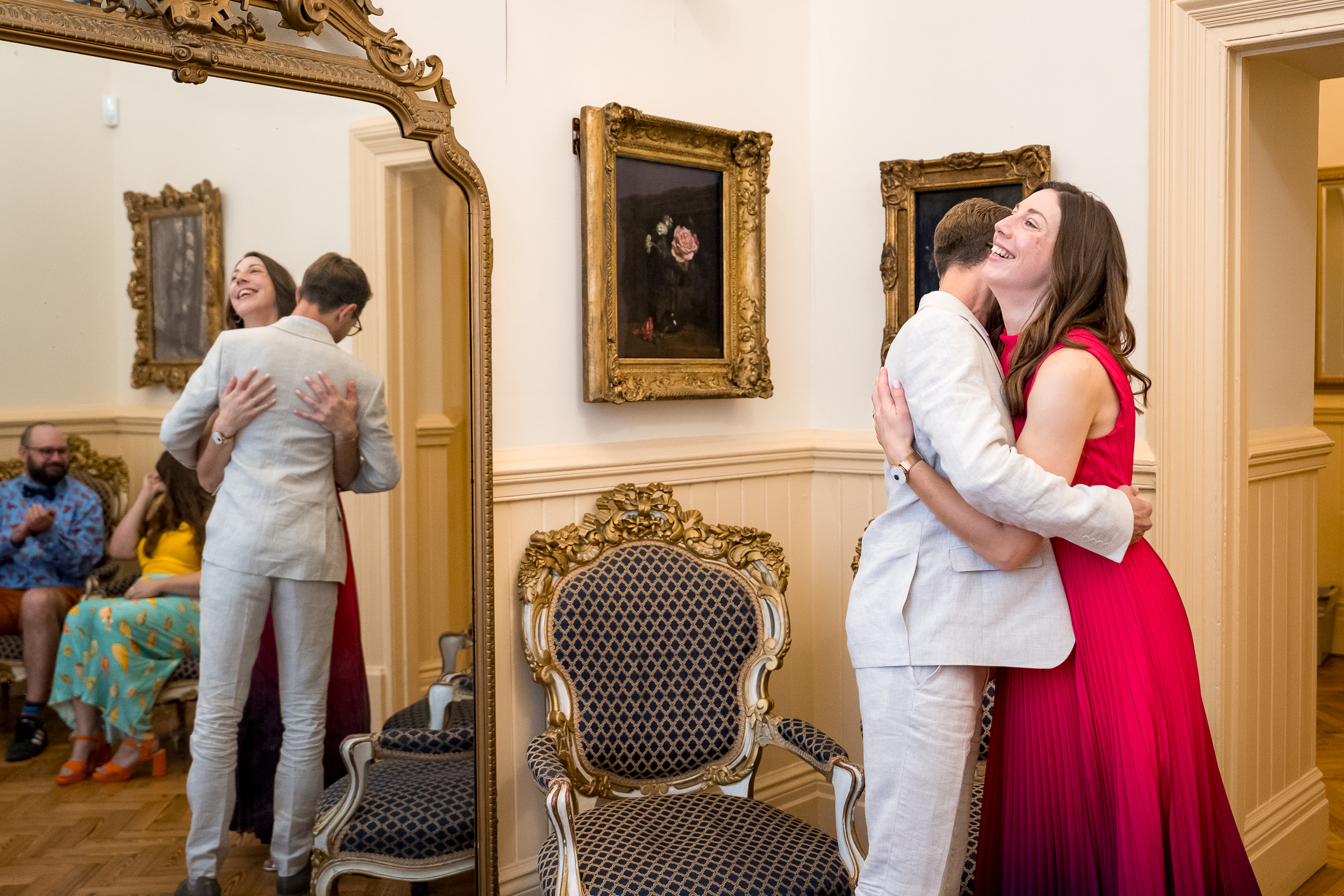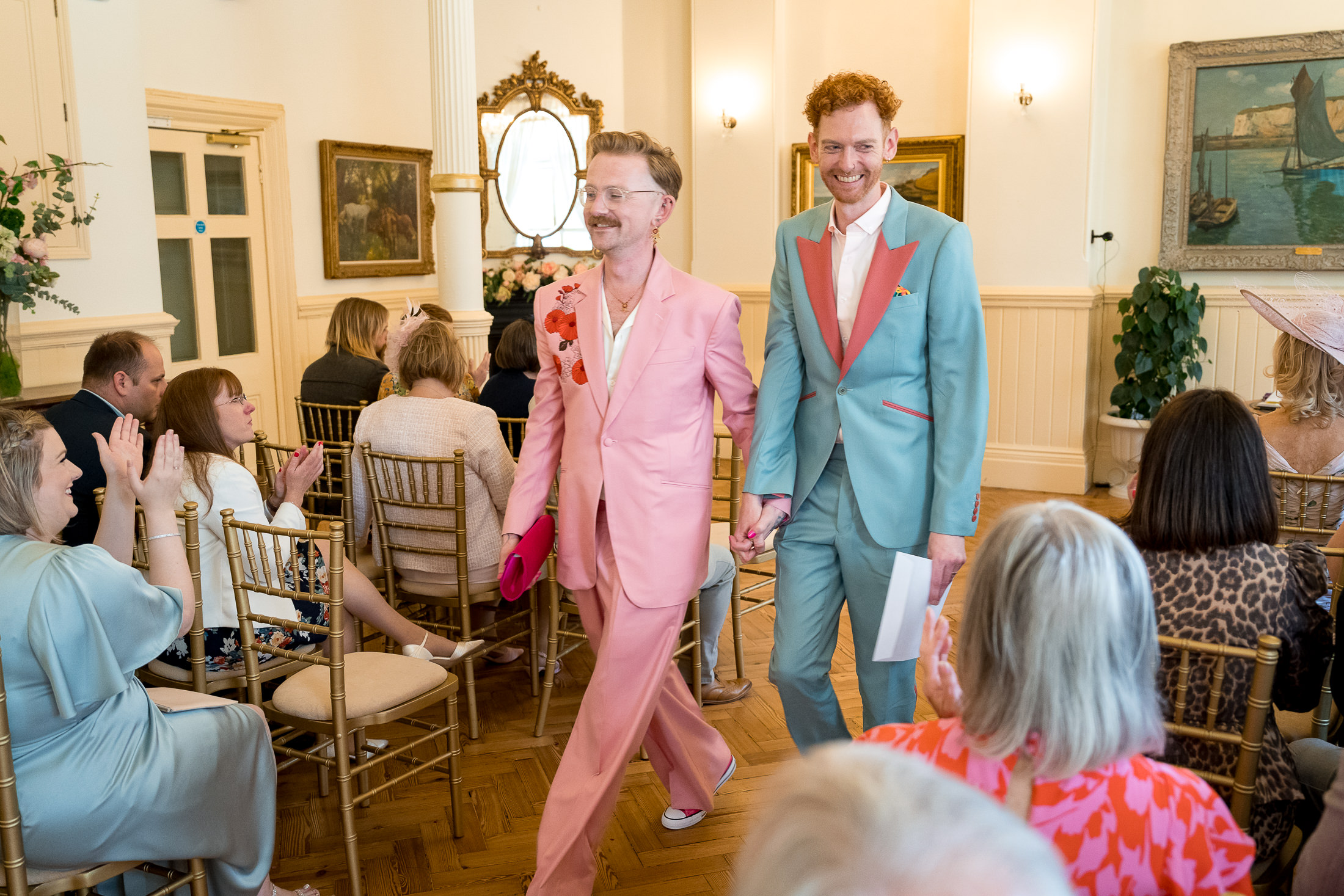 The Floral Room is part of the Recency suite on the ground floor. It's soft, romantic and quietly charming, making it ideal for elopements and very small Brighton Town Hall weddings. It's the kind of place that whispers rather than shouts, for weddings where the vibe is “just us, no big performance”. The floral paintings, the big mirror and the antique chairs (they belonged to Queen Victoria and that's why they're a bit low) create a lovely backdrop. Plus the natural light is kind and flattering.