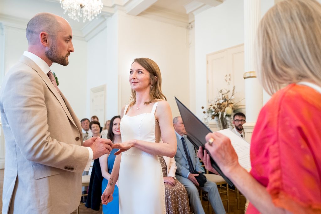 If you’re dreaming of a wedding with a bit of gravitas and room for your full guest list, the Council Chamber might be your pick. Up on the second floor, it’s the biggest and one of the most characterful spaces in the building. The oak-panelled walls, carved chairs and traditional décor give it a stately, almost cinematic atmosphere. I always love this room as it has so much to offer and it makes you feel like a part of history. As your guests go up the stairs to the second floor it adds a feeling of mystery to the day, building up anticipation. There is a small room next to the council chamber where you can take a few moments before and after the ceremony too.