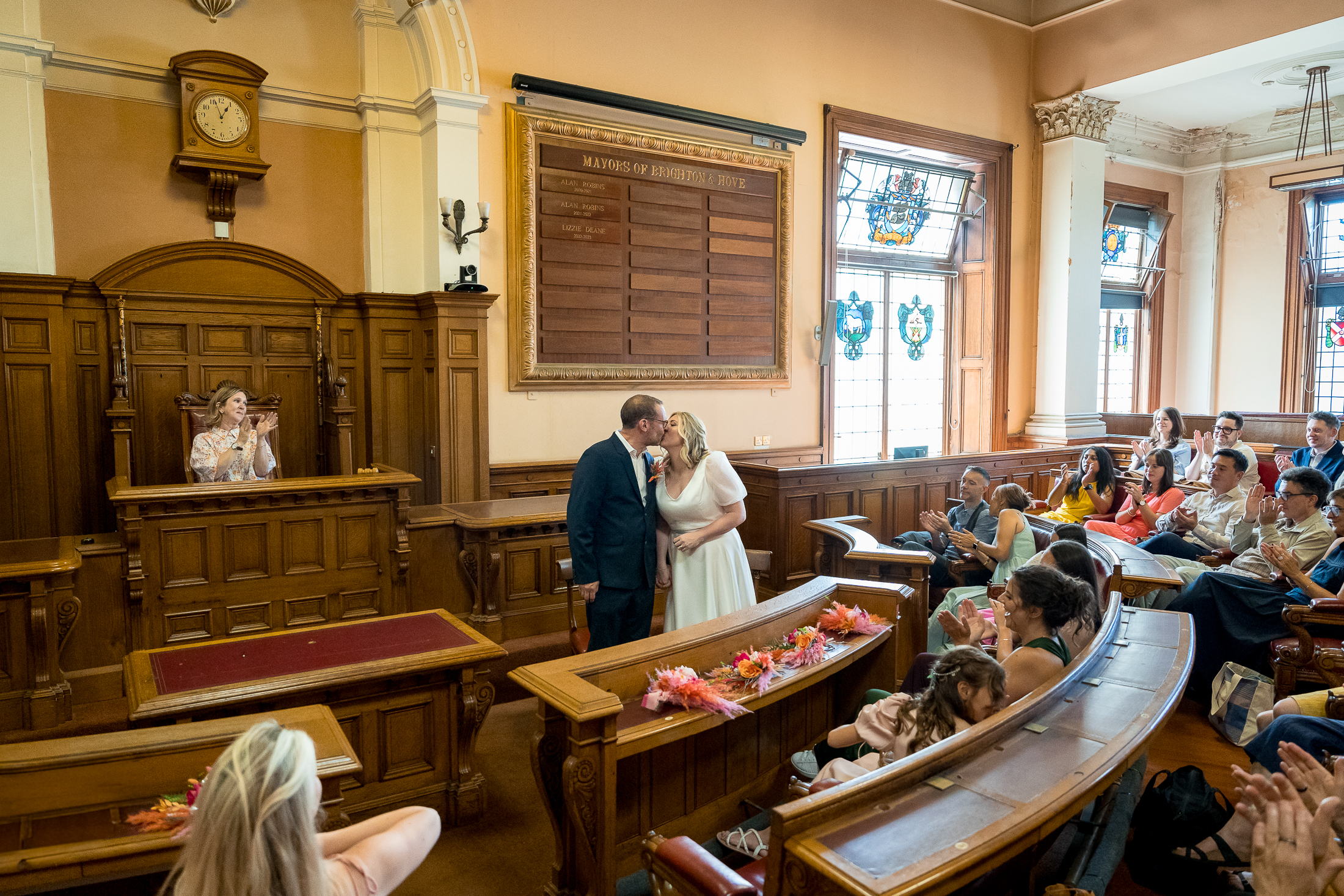 The Town Hall is a Grade 1 listed building with giant ionic columns and three different ceremony rooms that can accommodate weddings of different sizes (details below). All rooms are gorgeous with original features such as carved chairs and leather inlaid desks. As a Brighton wedding photographer I’ve been lucky enough to capture many ceremonies here with different couples, always enjoying the diversity of each wedding and the proximity to cool graffiti streets and the beach.
